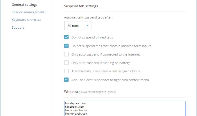 The Great Suspender is an easy-to-use tool. You just need to download and install the extension from Chrome Web Store. Once installed, you can set the time after which you want to suspend the tab. Tabs which are not in use will be suspended once crossed that time limit, which will again be activated when you click anywhere on the page.